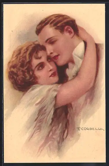 Künstler-AK T.Corbella: Frau umarmt Mann