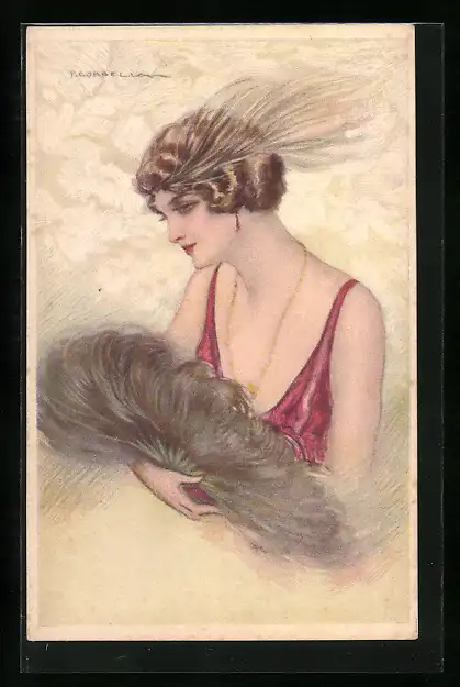 Künstler-AK T.Corbella: Porträt junge Frau mit Fächer