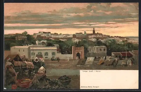 Künstler-AK Tanger, Blick auf den Ort