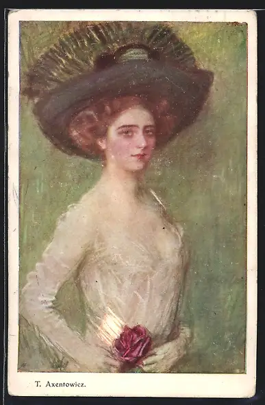 Künstler-AK Teodor Axentowicz: Junge Dame mit einer Rose