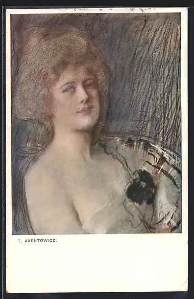 Künstler-AK Teodor Axentowicz: Portrait eines Mädchens mit nackten Schultern u. verträumtem Blick