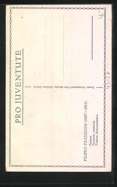 Künstler-AK Tessiner Bauernmädchen, Pro Juventute