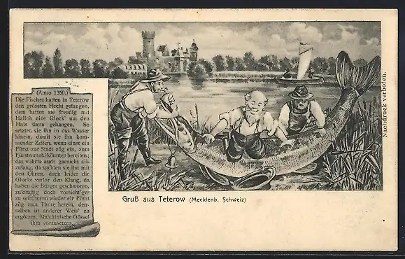 Künstler-AK Teterow /Mecklenb. Schweiz, Der Fang eines gewaltigen Hechtes