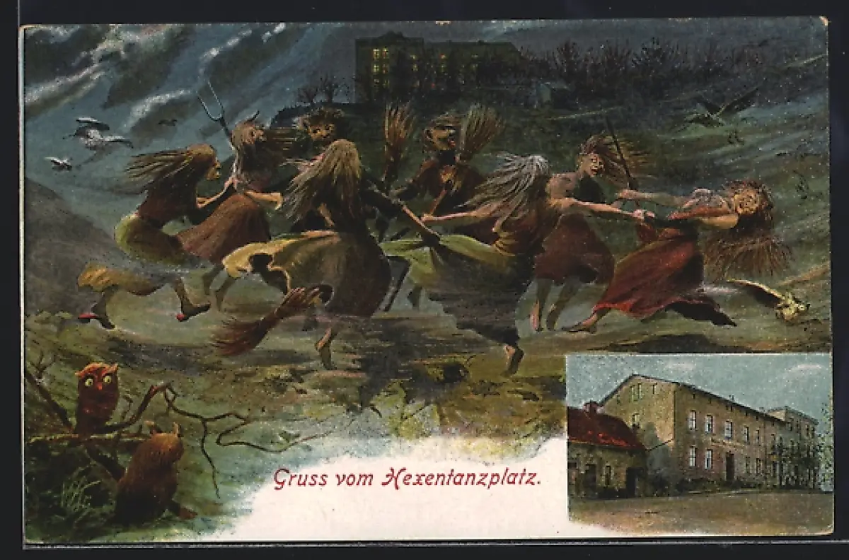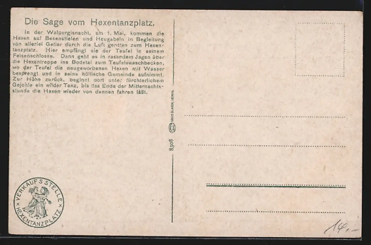 Künstler-AK Thale, Hexentanzplatz, Gasthaus, Sage