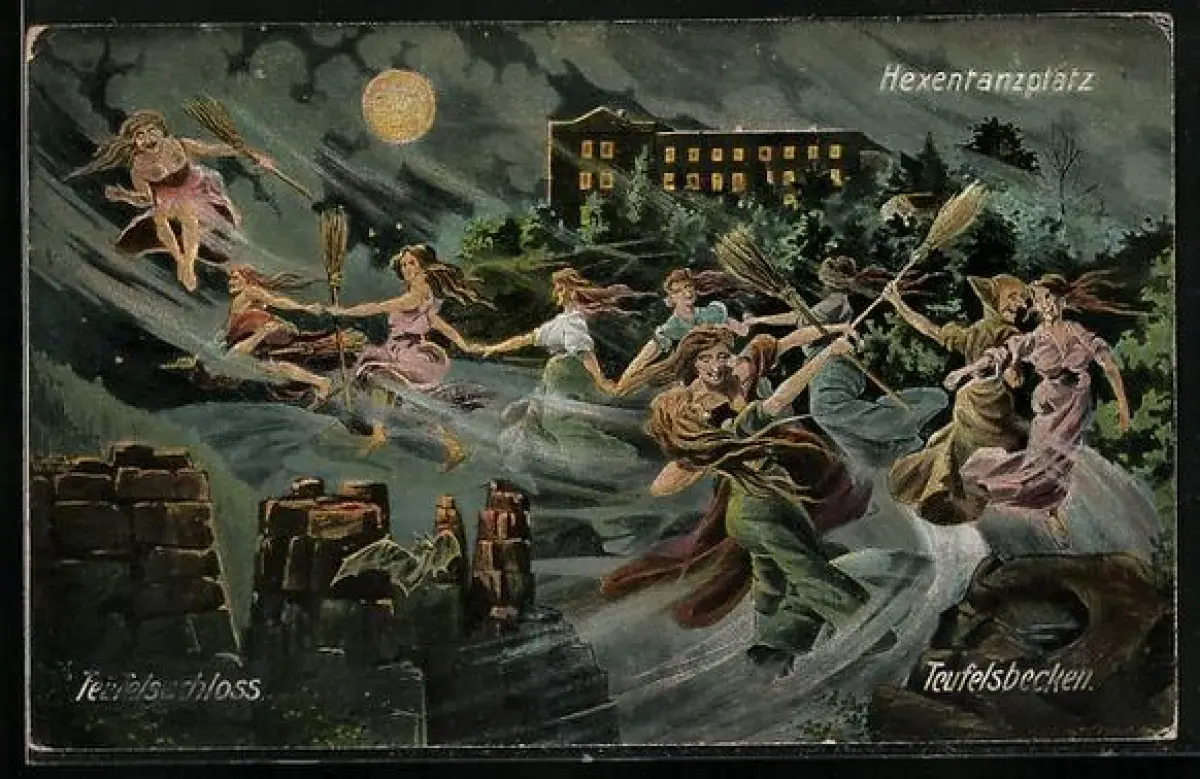 Künstler-AK Thale, Hexentanzplatz, Teufelsschloss, Teufelsbecken
