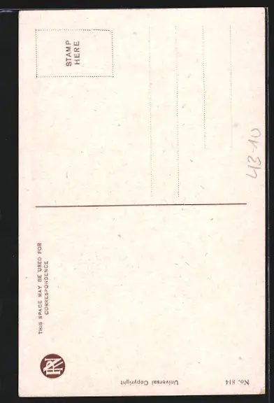 Personenbezogene Daten auf der Rückseite der Karte wurden durch blauen Textmarker unkenntlich gemacht. Die blauen Stellen sind auf die Vorderseite durchgeweicht und wirken sich negativ auf das Postkartenfoto aus