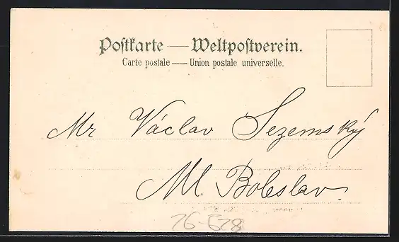 Personenbezogene Daten auf der Rückseite der Karte wurden durch blauen Textmarker unkenntlich gemacht. Die blauen Stellen sind auf die Vorderseite durchgeweicht und wirken sich negativ auf das Postkartenfoto aus
