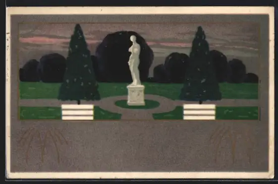 Künstler-AK Theo Stroefer Serie Nr. 686: Parkanlage mit Statue