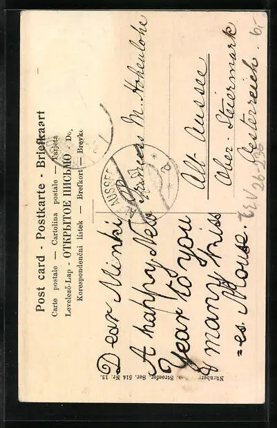 alte Ansichtskarte, gelaufen 1907, Briefmarke entfernt, rückseitig Oberflächenschaden, guter Zustand