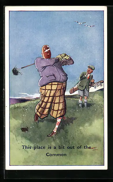 Künstler-AK This place is a bit out of the Common..., Golfspieler-Humor