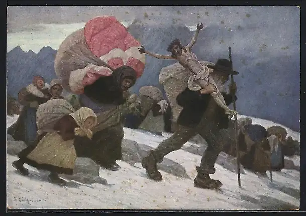 Künstler-AK Thomas Walch: Die Heimatlosen, Flüchtlinge