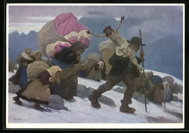 Künstler-AK Thomas Walch: Heimatlose Südtiroler auf Wanderschaft