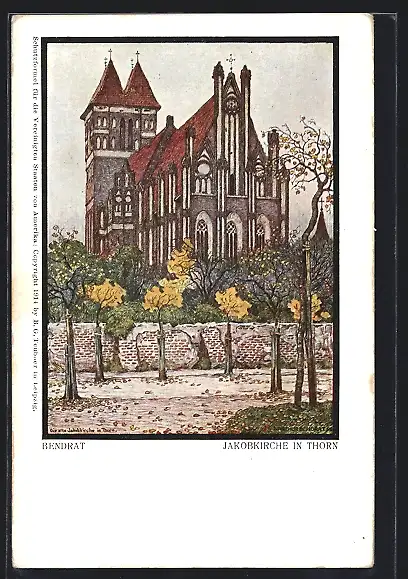 Künstler-AK Thorn / Torun, Jakobikirche im Frühling