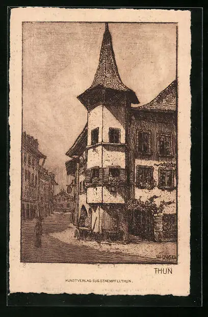 Künstler-AK Thun, Strassenpartie in der Stadt