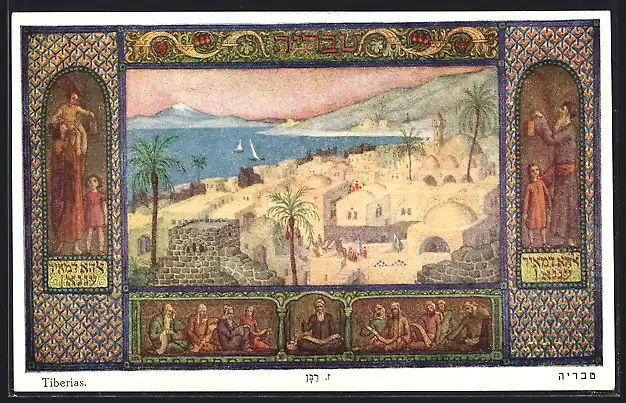 Künstler-AK Tiberias, Ortsansicht an der Küste