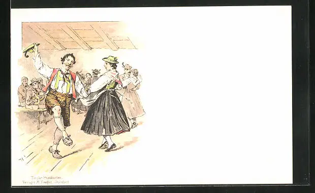 Künstler-AK Tiroler Paar in Tracht beim Tanz
