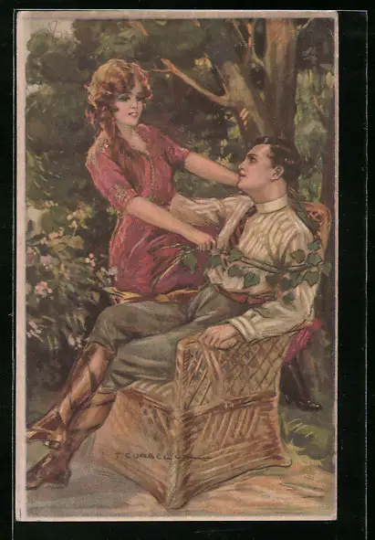 Künstler-AK Tito Corbella: Liebespaar bei einer Neckerei