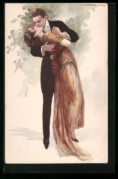 Künstler-AK Tito Corbella: verliebtes Paar küsst sich