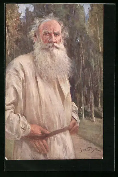 Künstler-AK Tolstoi in Tunica mit Vollbart