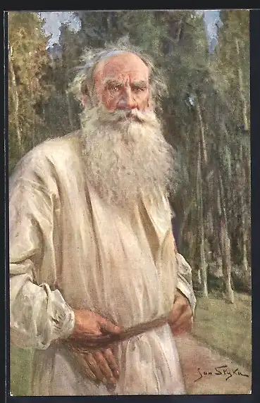 Künstler-AK Tolstoi in Tunica mit Vollbart
