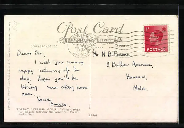 alte Ansichtskarte, gelaufen 1937, guter Zustand