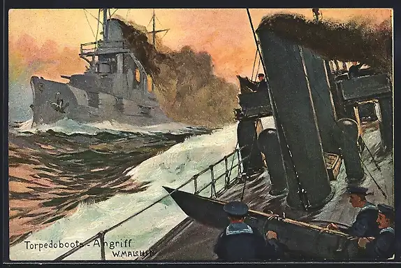 Künstler-AK Torpedoboots-Angriff auf unruhiger See