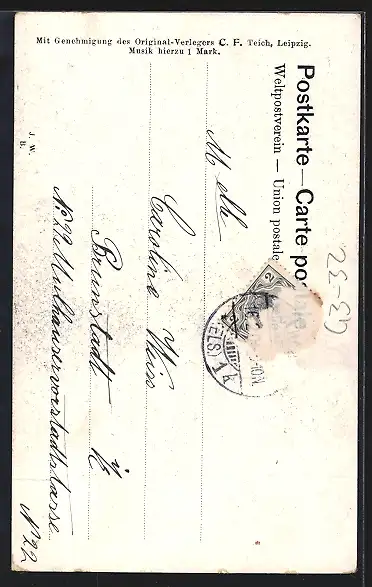 alte Ansichtskarte, gelaufen, Briefmarke entfernt, guter Zustand