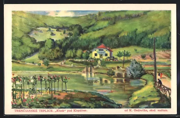 Künstler-AK Trencenteplic, Kiosk pod Klepacom