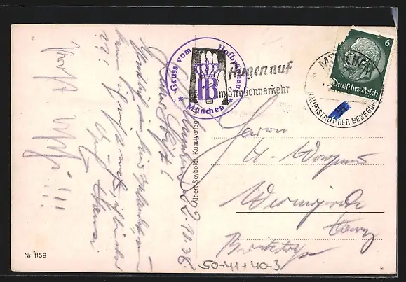 alte Ansichtskarte, gelaufen 1938, Briefmarke entfernt, guter Zustand