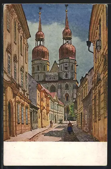 Künstler-AK Trnava, Strassenpartie zur Kirche