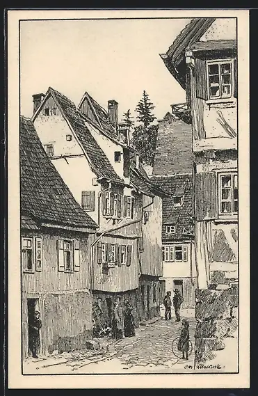 Künstler-AK Tübingen, Ansicht in der Urbangasse