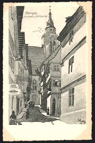 Künstler-AK Tübingen, Langegasse, Stiftskirche