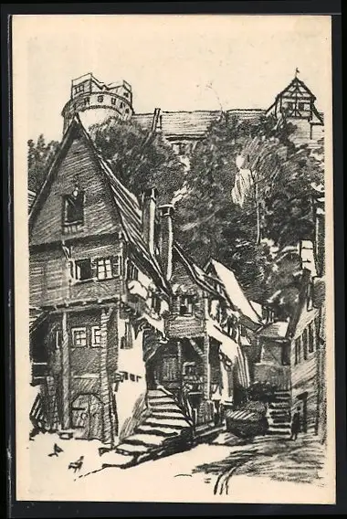 Künstler-AK Tübingen, Motiv aus der Altstadt