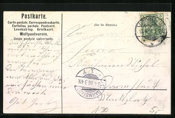 alte Ansichtskarte, gelaufen 1906, guter Zustand