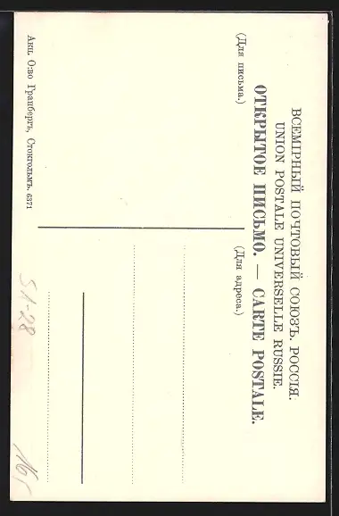 Personenbezogene Daten auf der Rückseite der Karte wurden durch blauen Textmarker unkenntlich gemacht. Die blauen Stellen sind auf die Vorderseite durchgeweicht und wirken sich negativ auf das Postkartenfoto aus