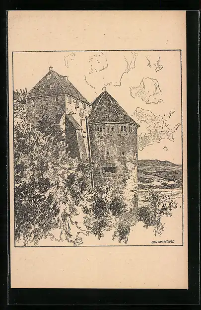 Künstler-AK Ubbelohde: Tübingen, Partie am Schloss