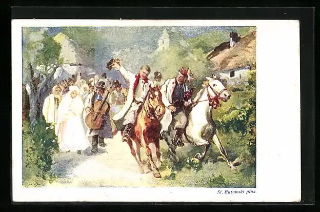Künstler-AK Ukrainischer Festzug, Reiter in Tracht