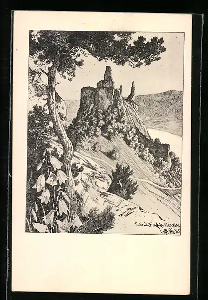 Künstler-AK Ulf Seidl: Dürnstein /Wachau, Ruine Dürnstein