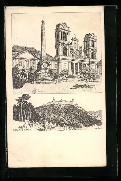 Künstler-AK Ulf Seidl: Göttweig, Blick auf den Stift