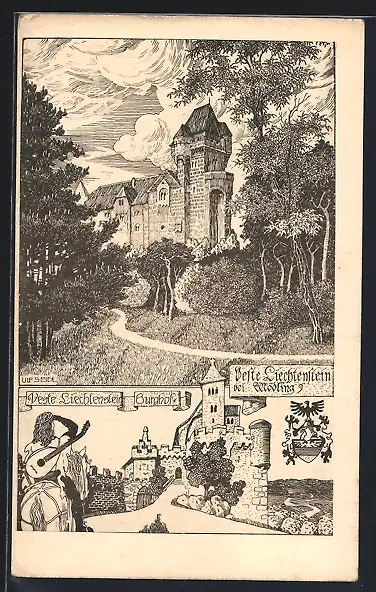 Künstler-AK Ulf Seidl: Liechtenstein bei Mödling, Veste Liechtenstein, Burghof