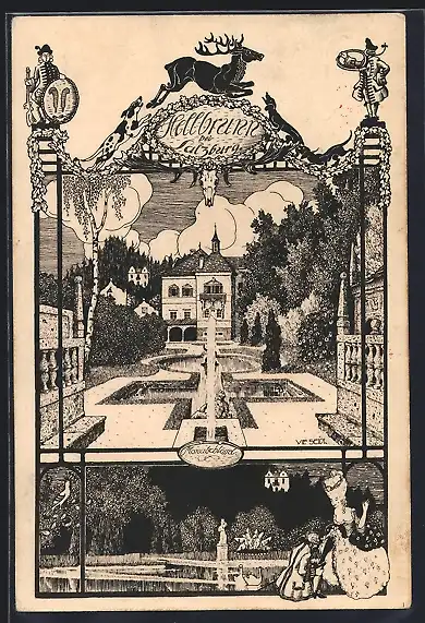 Künstler-AK Ulf Seidl: Salzburg, Hellbrunn, Monatschlössel