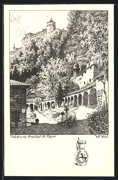 Künstler-AK Ulf Seidl: St.Peter, Partie am Friedhof