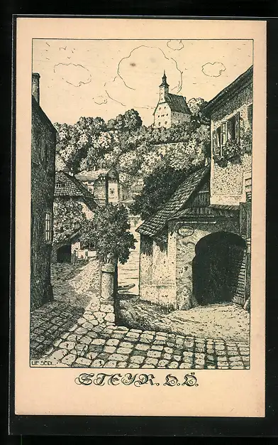 Künstler-AK Ulf Seidl: Steyr, Teilansicht