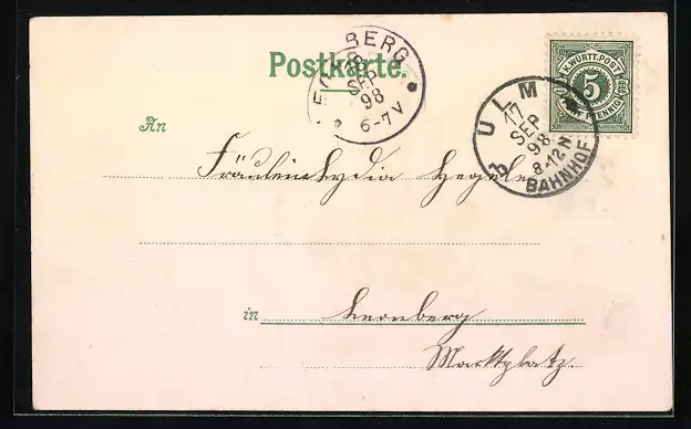 alte Ansichtskarte, gelaufen 1898, guter Zustand