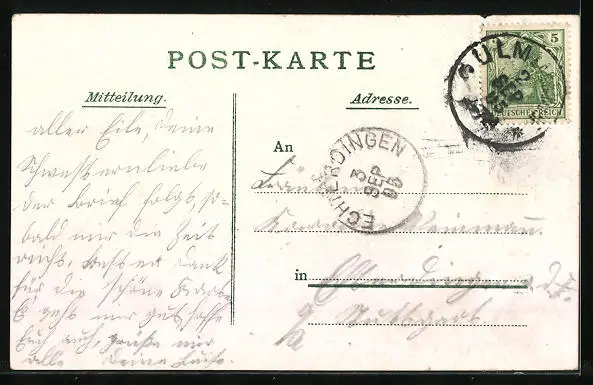 alte Ansichtskarte, gelaufen 1905, Stempelspur, guter Zustand
