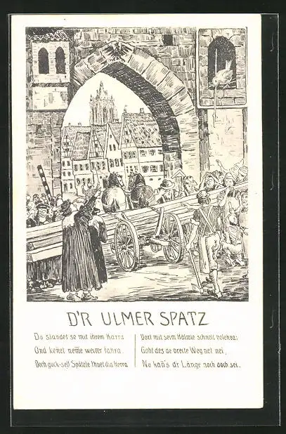 Künstler-AK Ulm a. D., D`r Ulmer Spatz