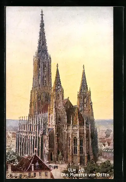Künstler-AK Ulm a. D., Münsterkirche von Osten gesehen