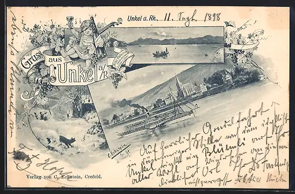 Künstler-AK Unkel a. Rh., Fluss mit Dampfer