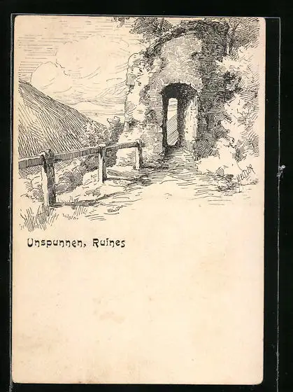 Künstler-AK Unspunnen, Ansicht der Ruinen