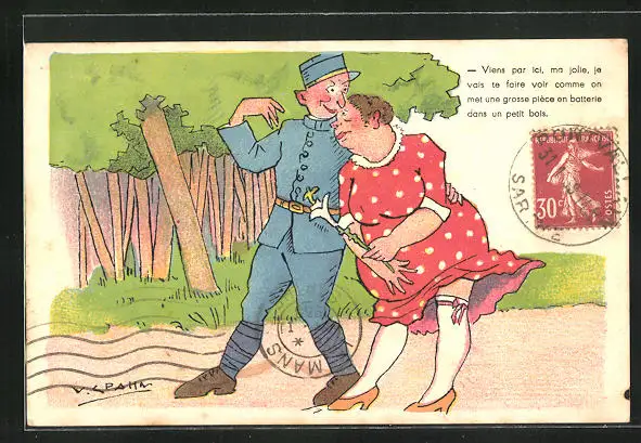 Künstler-AK V. Spahn: Soldat mit seiner Geliebten im Park